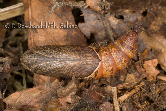 : Sphinx de la Garance (Hyles gallii), chrysalide, Krusne Hory, Vykmanov, République Tchèque.
