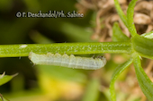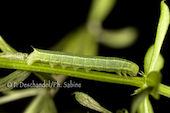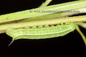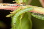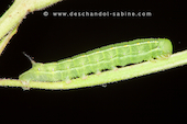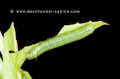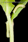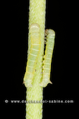 Sphinx de la Garance (Hyles gallii), chenille 1er stade, Krusne Hory, Vykmanov, République Tchèque.