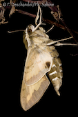 Sphinx de la Garance (Hyles gallii), imago femelle après éclosion, Krusne Hory, Vykmanov, République Tchèque.