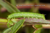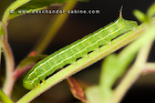 Sphinx de la Garance (Hyles gallii), chenille 2ème stade, forme verte, Krusne Hory, Vykmanov, République Tchèque.