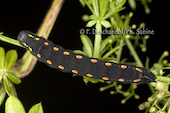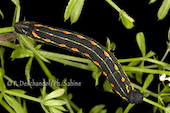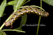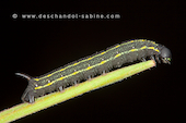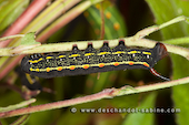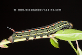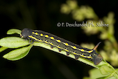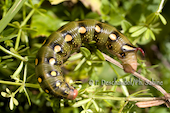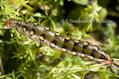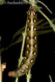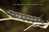 Sphinx de la Garance (Hyles gallii), chenille 3ème stade, forme sombre, Krusne Hory, Vykmanov, République Tchèque.