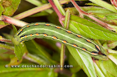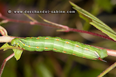 Sphinx de la Garance (Hyles gallii), chenille 3ème stade, forme verte, Mellby Torp, Öland, Suède.
