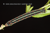 Sphinx de la Garance (Hyles gallii), chenille 3ème stade, forme sombre, Mellby Torp, Öland, Suède.