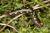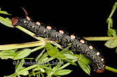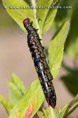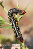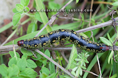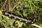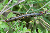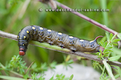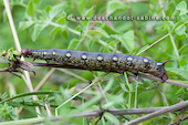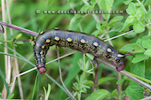 Sphinx de la Garance (Hyles gallii), chenille 5ème stade, forme sombre, Krusne Hory, Vykmanov, République Tchèque.