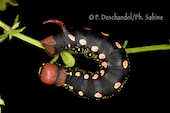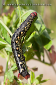 Sphinx de la Garance (Hyles gallii), chenille 4ème stade, forme sombre, Elevage.