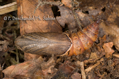 Sphinx de la Garance (Hyles gallii), chrysalide, Krusne Hory, Vykmanov, République Tchèque.