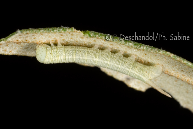 : Sphinx de l'Argousier (Hyles hippophaes hippophaes), chenille 2ème stade, Sud de la France.