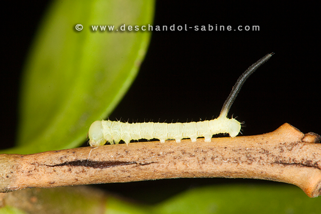 : Sphinx du Troène (Sphinx ligustri), chenille 1er stade, Treillières (44), France.