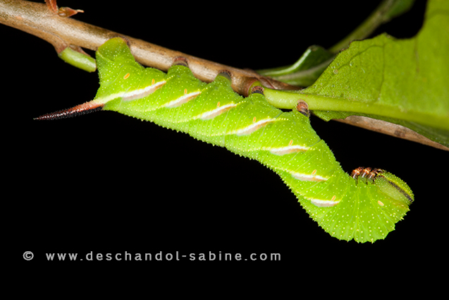 : Sphinx du Troène (Sphinx ligustri), chenille 4ème stade, Beussent (62), France.