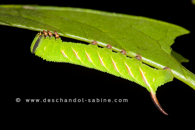 : Sphinx du Troène (Sphinx ligustri), chenille 4ème stade, Beussent (62), France.