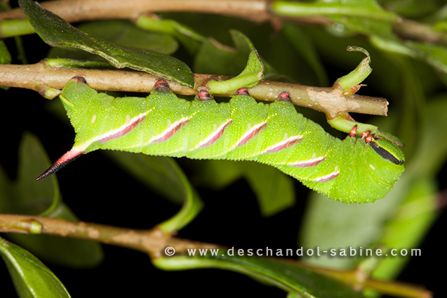 : Sphinx du Troène (Sphinx ligustri), chenille 4ème stade, Beussent (62), France.
