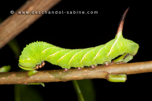 : Sphinx du Troène (Sphinx ligustri), chenille 4ème stade, Beussent (62), France.