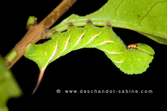 : Sphinx du Troène (Sphinx ligustri), chenille 4ème stade, Beussent (62), France.