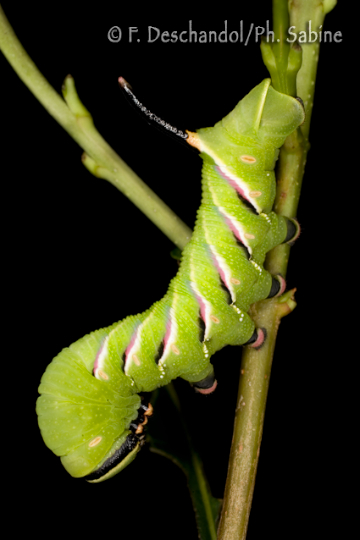 : Sphinx du Troène (Sphinx ligustri), chenille 5ème stade, Straubing, Bayern, Allemagne.