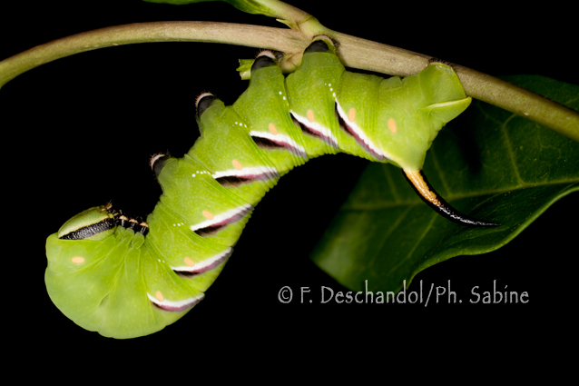 : Sphinx du Troène (Sphinx ligustri), chenille 5ème stade, Straubing, Bayern, Allemagne.