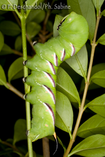 : Sphinx du Troène (Sphinx ligustri), chenille 5ème stade, Straubing, Bayern, Allemagne.