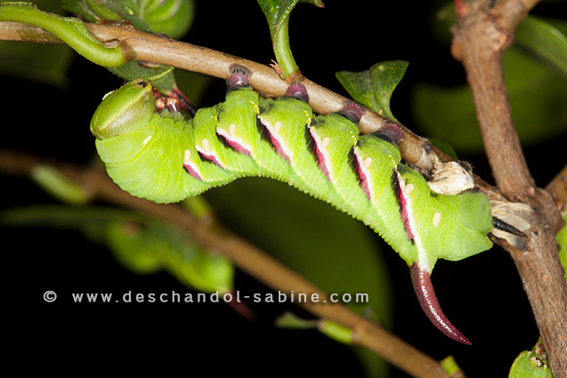 : Sphinx du Troène (Sphinx ligustri), chenille 5ème stade, Beussent (62), France.