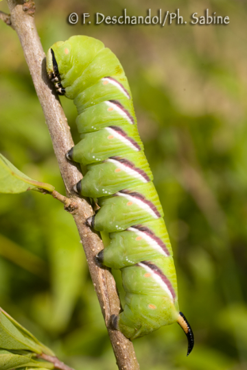: Sphinx du Troène (Sphinx ligustri), chenille 5ème stade, Straubing, Bayern, Allemagne.