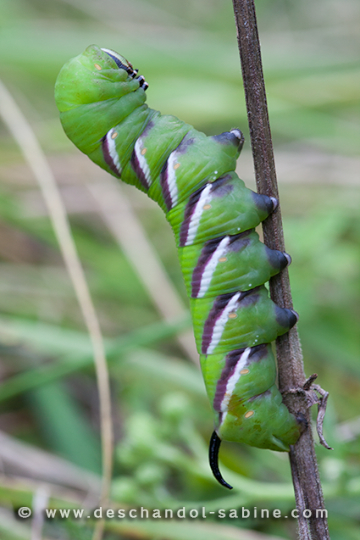 : Sphinx du Troène (Sphinx ligustri), chenille 5ème stade, Treillières (44), France.