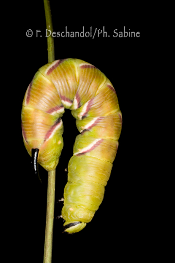 : Sphinx du Troène (Sphinx ligustri), chenille avant nymphose, Straubing, Bayern, Allemagne.