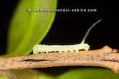 Sphinx du Troène (Sphinx ligustri), chenille 1er stade, Treillières (44), France.