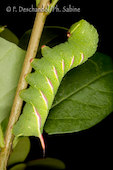 Sphinx du Troène (Sphinx ligustri), chenille 4ème stade, Beussent (62), France.
