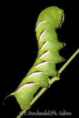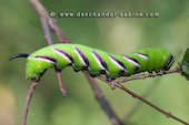 Sphinx du Troène (Sphinx ligustri), chenille 5ème stade, Beussent (62), France.