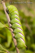 Sphinx du Troène (Sphinx ligustri), chenille 5ème stade, Vallée d'Anso, Pyrénées, Espagne.
