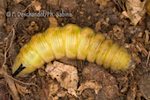 Sphinx du Troène (Sphinx ligustri), chenille en cours de nymphose, Straubing, Bayern, Allemagne.