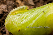 Sphinx du Troène (Sphinx ligustri), chenille en mue, passage au 5ème stade, Straubing, Bayern, Allemagne.