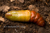 Sphinx du Troène (Sphinx ligustri), chrysalide récente, Straubing, Bayern, Allemagne.