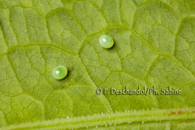 : Sphinx livournien (Hyles livornica), oeufs, Ténérife, Iles Canaries, Espagne.