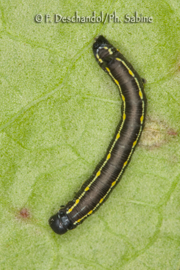 : Sphinx livournien (Hyles livornica), chenille 2ème stade, Ténérife, Iles Canaries, Espagne.