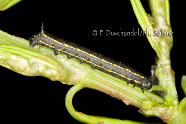 : Sphinx livournien (Hyles livornica), chenille 2ème stade, Ténérife, Iles Canaries, Espagne.