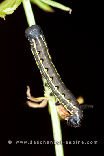 : Sphinx livournien (Hyles livornica), chenille 3ème stade, Alsace (67), France.