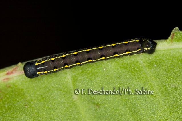 : Sphinx livournien (Hyles livornica), chenille 3ème stade, Ténérife, Iles Canaries, Espagne.