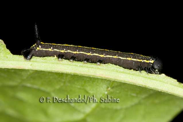 : Sphinx livournien (Hyles livornica), chenille 3ème stade, Ténérife, Iles Canaries, Espagne.