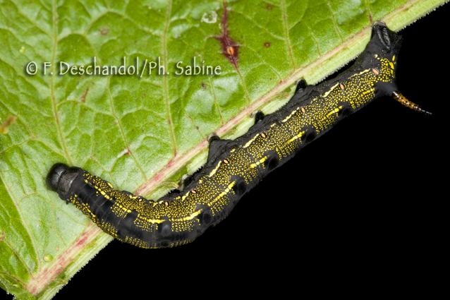 : Sphinx livournien (Hyles livornica), chenille 5ème stade, Ténérife, Iles Canaries, Espagne.