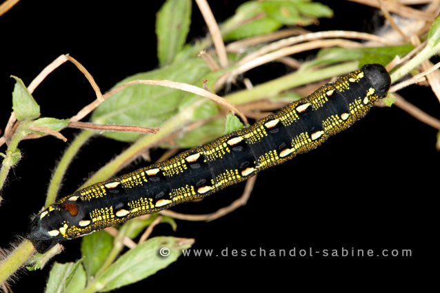 : Sphinx livournien (Hyles livornica), chenille 5ème stade, Alsace (67), France.
