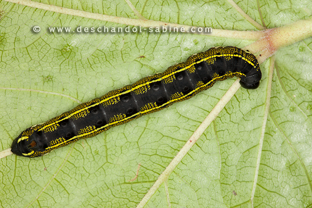 : Sphinx livournien (Hyles livornica), chenille 5ème stade, Laplume (47), France.