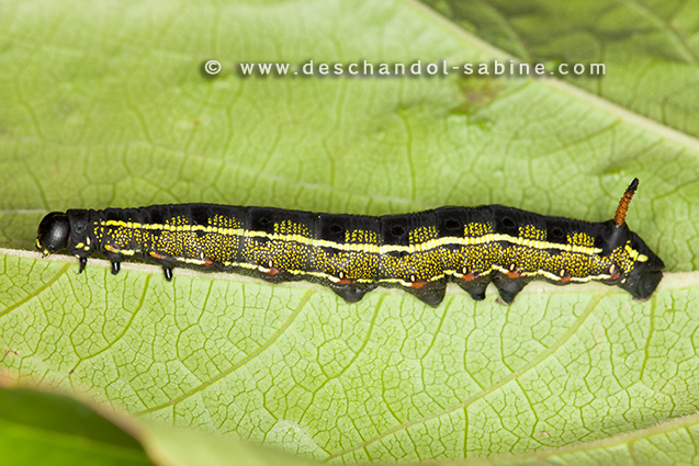 : Sphinx livournien (Hyles livornica), chenille 5ème stade, Laplume (47), France.