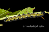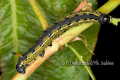 Sphinx livournien (Hyles livornica), chenille 5ème stade, Alsace (67), France.