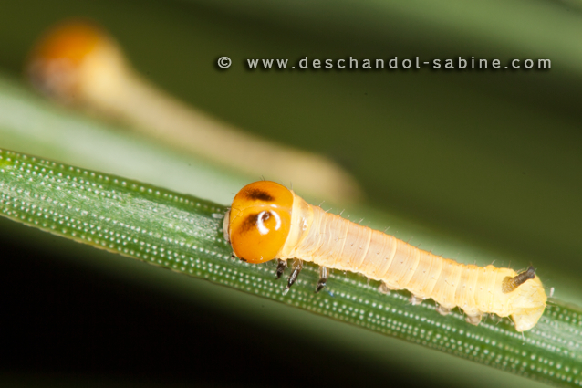 : Sphinx du Pin méridional (Sphinx maurorum), chenille 1er stade, Laplume (47), France.