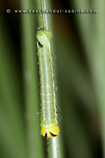 : Sphinx du Pin méridional (Sphinx maurorum), chenille 2ème stade, Laplume (47), France.