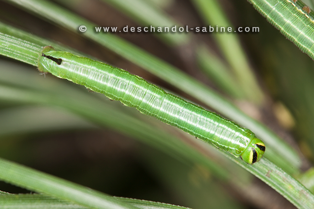 : Sphinx du Pin méridional (Sphinx maurorum), chenille 2ème stade, Laplume (47), France.