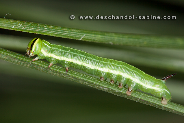 : Sphinx du Pin méridional (Sphinx maurorum), chenille 2ème stade, Laplume (47), France.