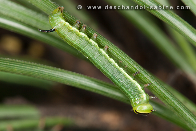: Sphinx du Pin méridional (Sphinx maurorum), chenille 2ème stade, Laplume (47), France.