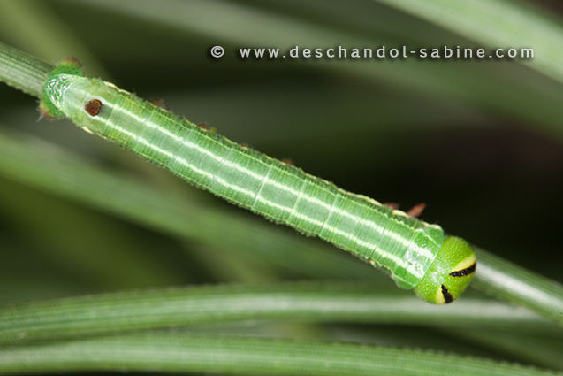 : Sphinx du Pin méridional (Sphinx maurorum), chenille 3ème stade, Laplume (47), France.