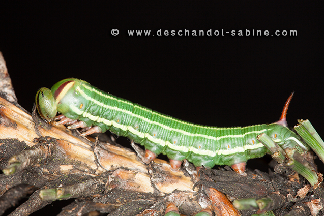 : Sphinx du Pin méridional (Sphinx maurorum), chenille 4ème stade, mue proche, Laplume (47), France.
