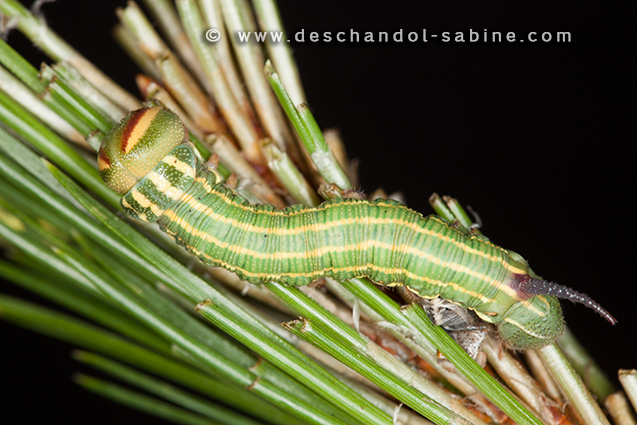 : Sphinx du Pin méridional (Sphinx maurorum), chenille 5ème stade après la mue, Laplume (47), France.